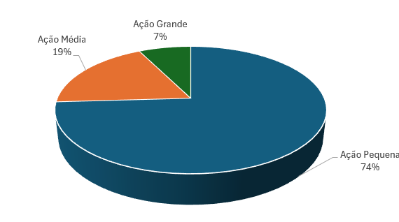 As ações de caráter quantitativo deverão alcançar, ao longo dos 24 meses estabelecidos no Termo de Colaboração, um total de 1.960 participantes. Para facilitar o acompanhamento desse público no processo de prestação de contas, as ações foram categorizadas em três dimensões: P, destinadas a aproximadamente 40 pessoas; M, voltadas a cerca de 100 pessoas; e G, com alcance médio de 300 participantes. Assim, mais do que a quantidade de ações em cada categoria, o aspecto central é garantir que a meta global de participação seja efetivamente cumprida.